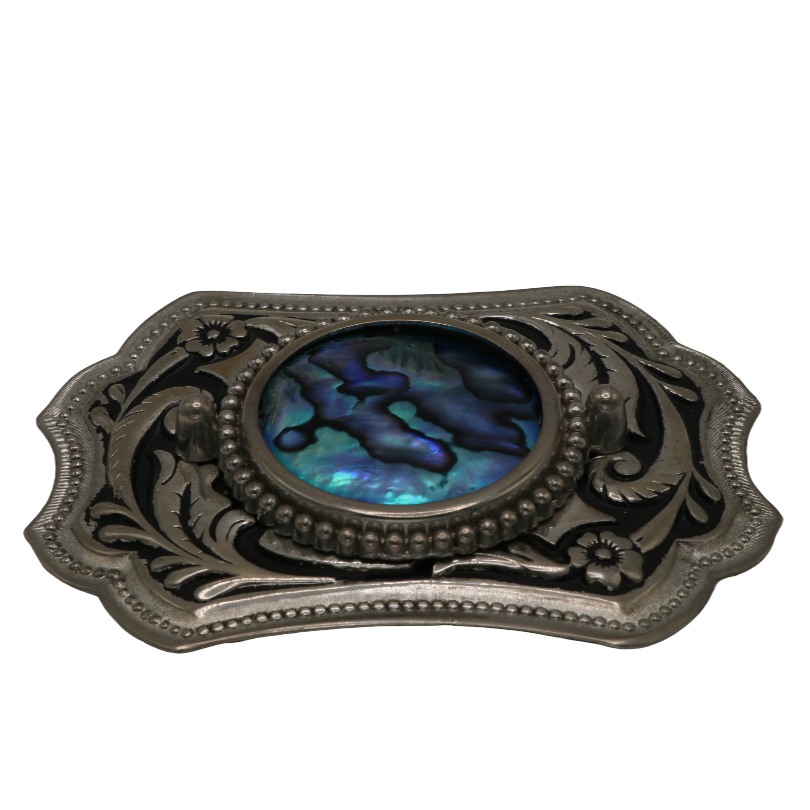• Load image into Gallery viewer, Silver & Blue Abalone Shell Belt Buckle