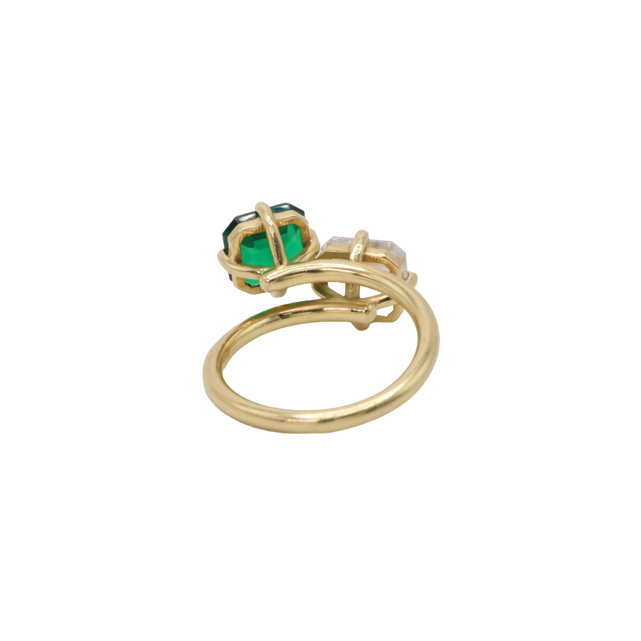 This piece marks the beginning of building your fine jewelry collection, one meaningful piece at a time. Thoughtfully designed in 18k yellow gold with a 2.0ct IGI-certified lab diamond and a 1.50ct emerald, both prong-set to showcase their natural brilliance.